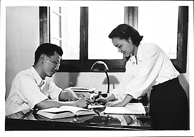 1961年,严东生夫妇交流学术问题。