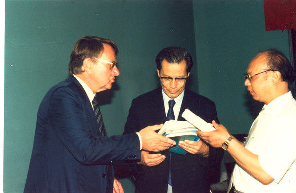 1988年,严东生在中德双边会议上与同行交流