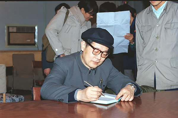 周光召在理论物理所参加学生联欢会,为学生题字留念