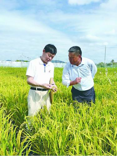 李家洋(左)在查看水稻生长情况。遗传发育所供图