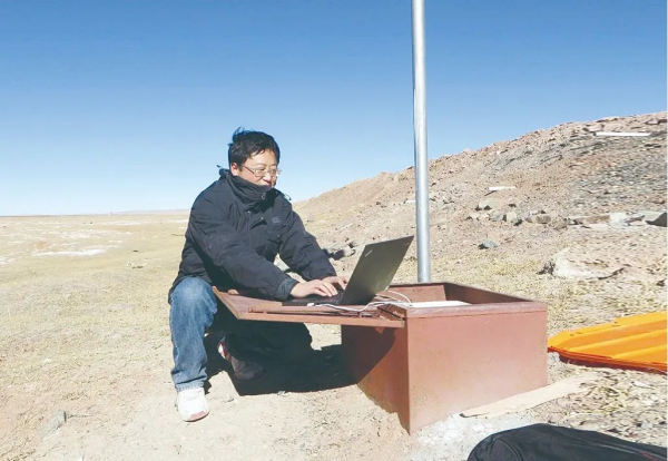 马巍在野外安装相关试验仪器。