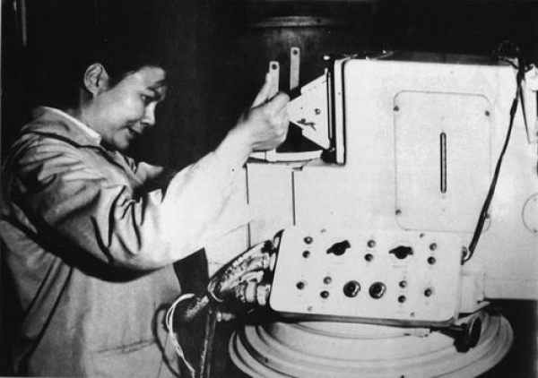 叶叔华在徐家汇观象台进行时间观测。上海天文台供图