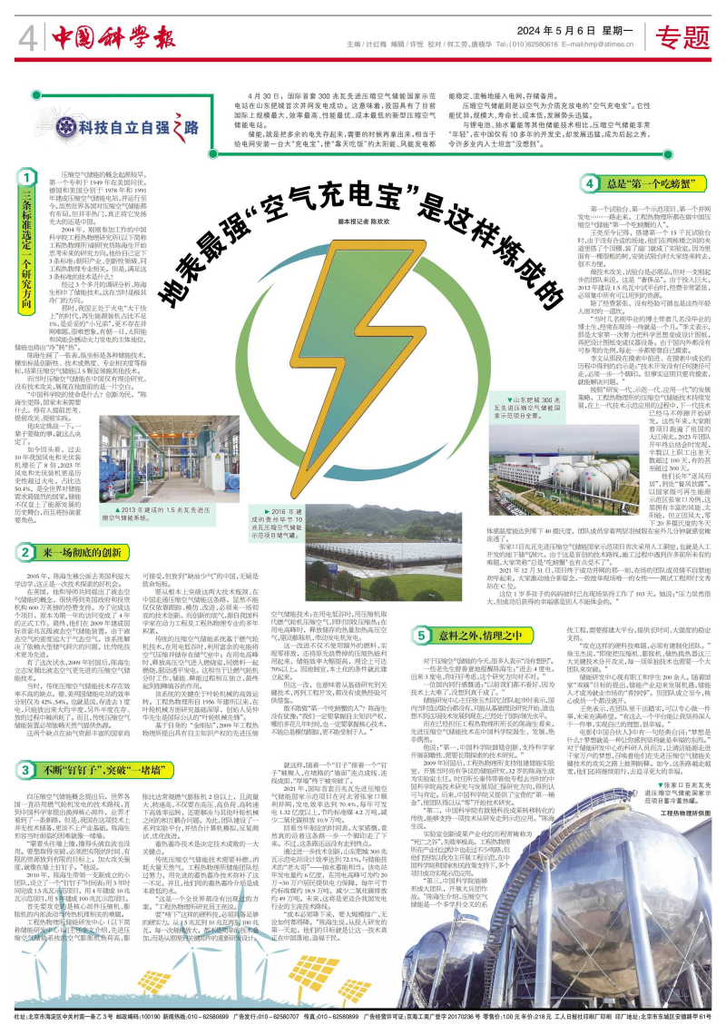 有了这次试水,2009年回国后,陈海生立志发展比液态空气更先进的压缩空气储能技术。