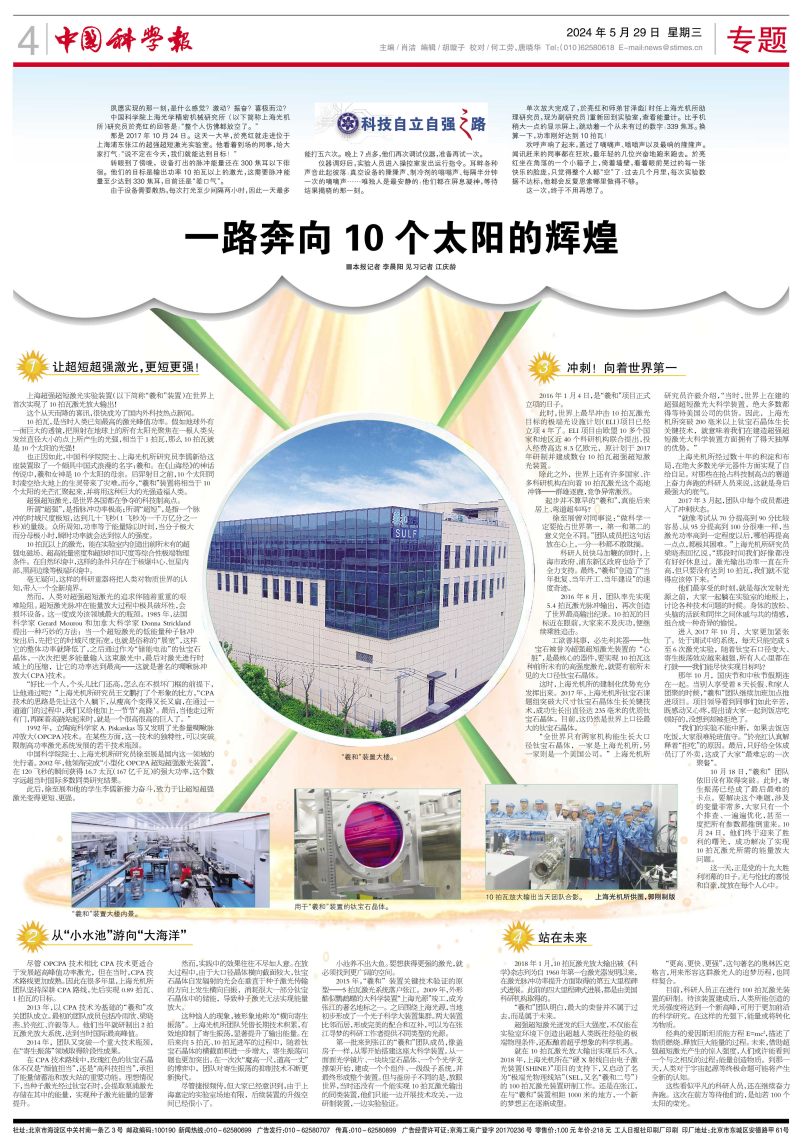 2018年1月,10拍瓦激光放大输出被《科学》杂志列为自1960年第一台激光器发明以来,在激光脉冲功率提升方面取得的第五大里程碑式进展。此前的四大里程碑式进展,都是由美国科研机构取得的。