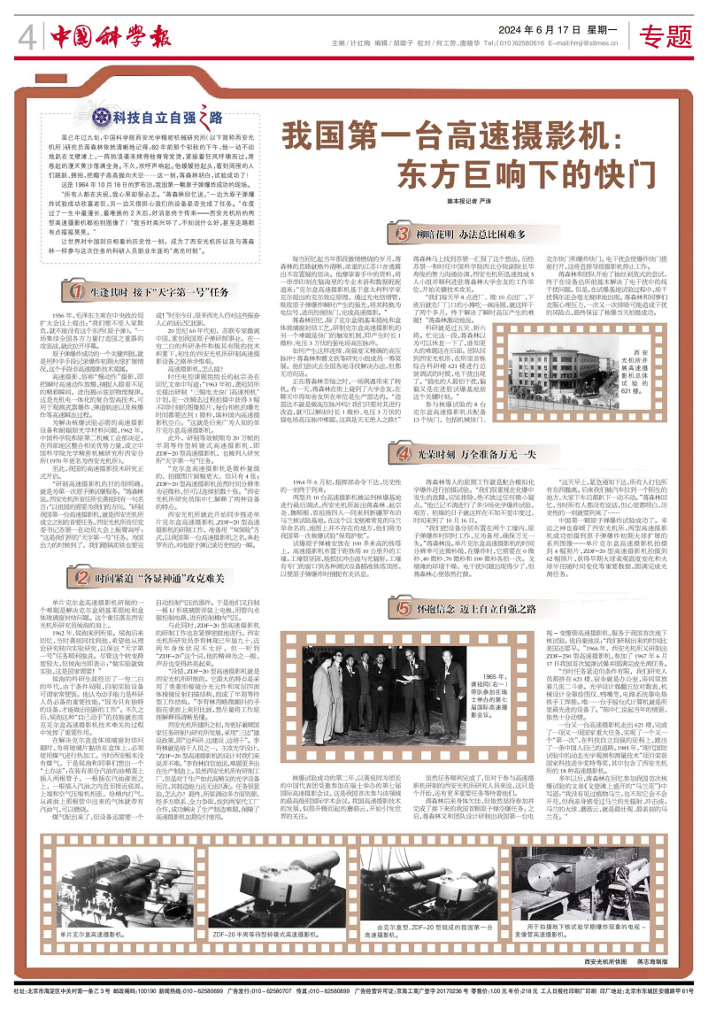 一台又一台高速摄影机走出621楼,完成了一项又一项国家重大任务,实现了一个又一个“第一次”,在科技自立自强的征程上,蹚出了一条中国人自己的道路。1985年,“现代国防试验中的动态光学观测和测量技术”项目荣获国家科技进步奖特等奖,其中包含了西安光机所的18种高速摄影机。