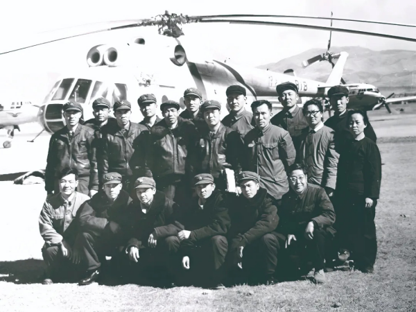 1978年12月,“米-8”型直升机光谱测量及空地勤人员落地后合影。