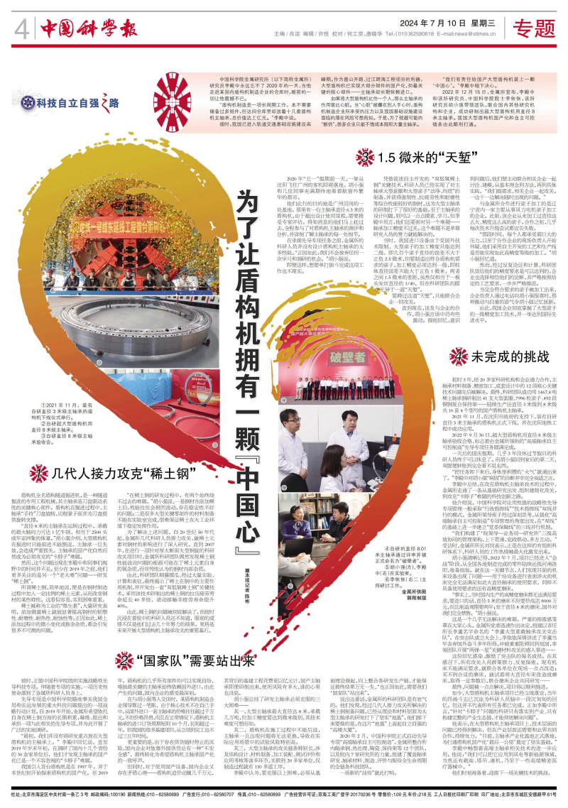 李殿中总结,在攻克盾构机主轴承技术的过程中,金属所走通了一条从基础研究出发、组织建制化攻关,到攻克“卡脖子”难题的科技创新之路。