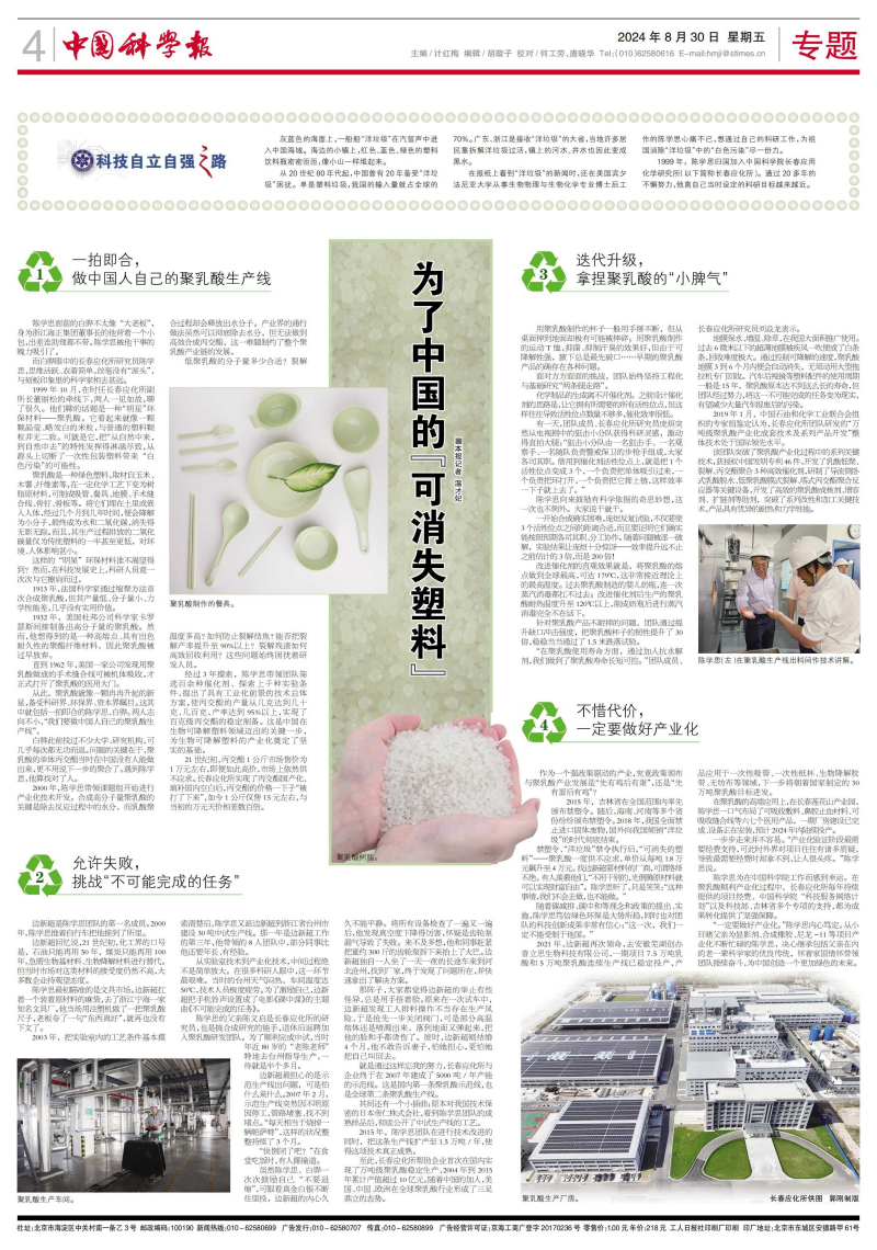 从此,聚乳酸就像一颗冉冉升起的新星,备受科研界、环保界、资本界瞩目。这其中就包括一拍即合的陈学思、白骅。两人志向不小,“我们要做中国人自己的聚乳酸生产线”。