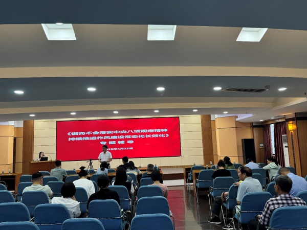 会议邀请广东省委党校专家作题为《锲而不舍落实中央八项规定精神 持续推进作风建设常态化长效化》的专题辅导报告。报告从中央八项规定的提出背景、主要内容、贯彻落实三个方面对中央八项规定实施细则、中央八项规定精神及其具体要求进行了深入解读。报告结合众多实际案例,深入浅出地分析了当前我国面临的新形势、新挑战,强调了全面从严治党是我们在党的建设问题上做出的一个最为正确、义无反顾的选择。