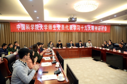 大学(简称“国科大”)党委在雁栖湖校区召开师生党员代表学习贯彻十九大精神研讨会。中科院副院长、党组成员、国科大党委书记张杰参加研讨并发表讲话。国科大党委副书记、纪委书记高随祥主持会议。校党委职能部门负责人以及各学院师生党员代表共50余人参加了会议。这是国科大党委为落实全校学习贯彻十九大精神工作方案组织的第二次集体学习活动。