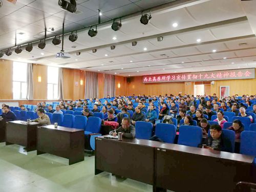 西北高原生物研究所召开学习宣传贯彻十九大精神报告会。西北高原所全体职工、研究生、离退休代表出席会议,会议由党委委员、副所长陈世龙主持。
