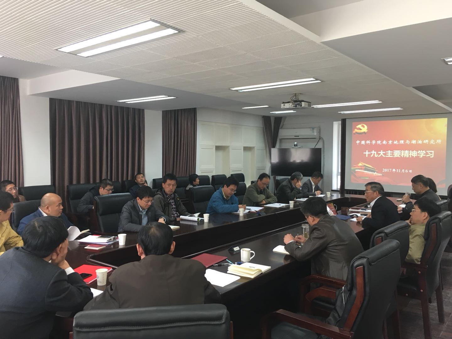 南京地理与湖泊研究所召开党委中心组扩大学习会议,传达学习党的十九大精神,安排部署全所学习宣传贯彻十九大精神近期工作。所领导、党委委员、纪委委员、工会主席、职能部门负责人、党支部书记和研究室负责人参加了会议。