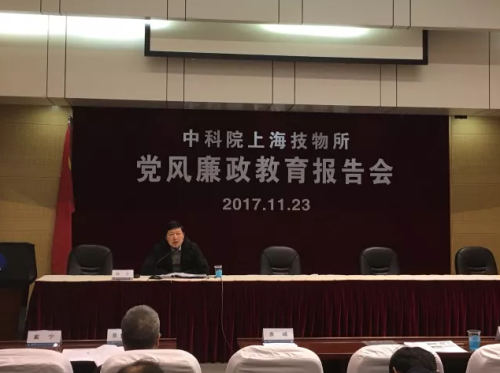 上海技术物理研究所召开学习十九大精神暨党风廉政教育报告会,贯彻落实十九大关于党风廉政建设和反腐败工作的新要求。上海技物所相关负责人、所长助理、党委委员、纪委委员、各部门党政负责人参加会议。