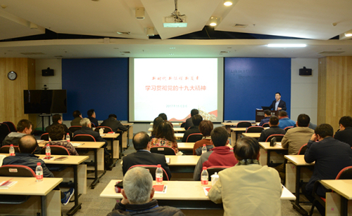 报告回顾了党的十九大总体情况,通过历次党的全国代表大会的主题变化,对党的十九大主题进行了深入分析解读。通过数据变化回顾了党的十八大以来党和国家取得的全方位、开创性成就和深层次、根本性变革,详细解读了党中央作出“中国特色社会主义进入了新时代”这一重大判断的基本依据、伟大意义。报告解读了习近平新时代中国特色社会主义思想的历史地位和丰富内涵,以及新时代坚持和发展中国特色社会主义的基本方略,重点解读了“加快建设创新型国家”和“坚定不移全面从严治党”两个部分的内容。报告分析了新时代中国共产党的历史使命,以及实现第一个百年奋斗目标和向第二个百年奋斗目标进军的战略安排。报告最后介绍了党的十九大对党章的修订成果。报告系统全面、内容丰富、解读透彻、提振精神,既是对党的十九大精神的深入宣讲,又是对全所贯彻落实党的十九大精神的动员部署,对全所学习贯彻党的十九大精神具有重要的指导意义。