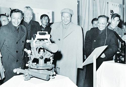 自然科学跃进成果展览(前右左分别为时任院长郭沫若和党组书记张劲夫)。