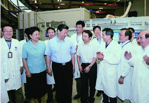 1999年8月20日,江泽民同志在时任院长路甬祥陪同下视察大连化学物理研究所。