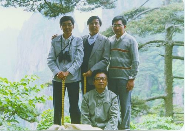 陈式刚与九所同事爬山(前排:王光瑞,后排左起:陈式刚、贺贤土、郭柏灵)。