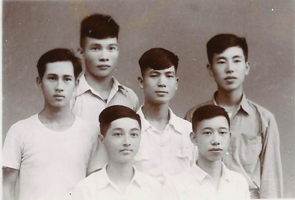 1954年中学毕业时,陈式刚(前排左一)与同学们合影。