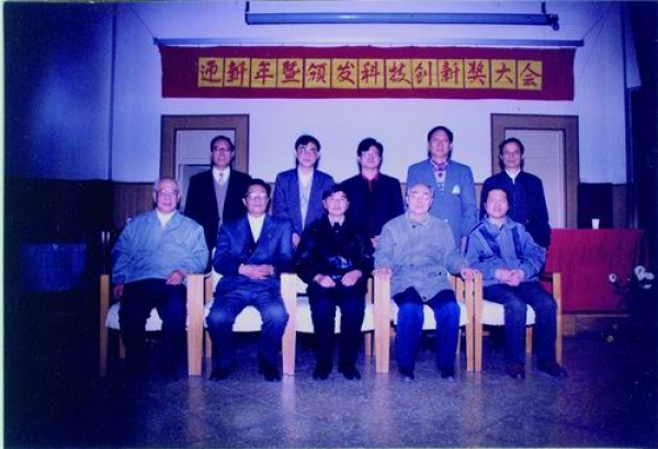 1997年12月29日,陈式刚两名弟子获中物院研究生部首届科技创新奖时合影(前排右二为于敏,右三为陈式刚)。