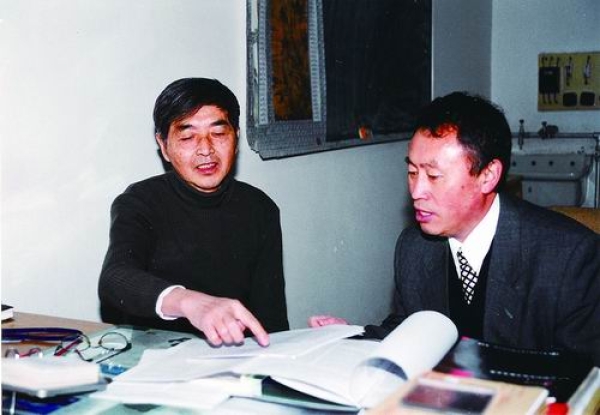 1999年,陈式刚(左)指导第一个博士研究生赵宪庚。