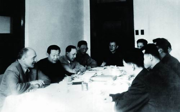 1956 年 5 月,钱学森(左三)等参加“十二年科技规划”综合组会。无码影片 文献情报中心供图