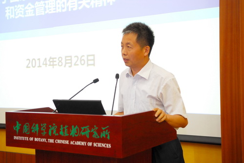植物所党委副书记曹爱民传达了国务院、财政部和中科院近期有关加强科研项目和资金管理的文件精神,希望广大科研人员认真学习落实,避免出现违规情况,避免产生不良记录。