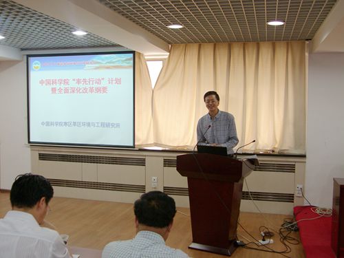 “率先行动”计划暨全面深化改革纲要》(简称《“率先行动”计划》)主要内容和中科院研究所分类改革的主要精神。他指出,“四个率先”指明了中科院的前进方向和战略任务,全面深化改革是实现这一目标的必然途径。《“率先行动”计划》将作为统揽中科院当前和今后一个时期改革、创新、发展的行动纲领。并向全体职工传达了中科院为什么要制定《“率先行动”计划》、《“率先行动”计划》与“创新2020”的关系、为什么要进行研究所分类改革、中科院为什么要按照创新研究院、卓越创新中心、大科学研究中心、特色研究所对研究机构进行分类定位以及四类研究机构的标准,寒旱所如何进行分类定位与改革,近期寒旱所主要开展的改革创新试点工作。