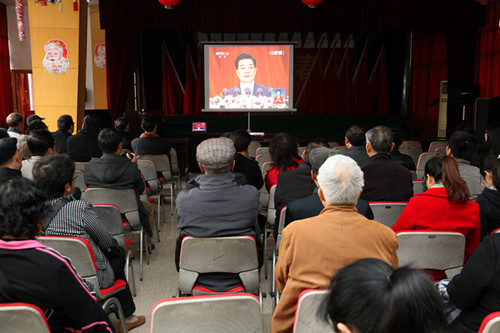 上午9时,当胡锦涛总书记在党的十八大作报告的声音响起,会场里顿时鸦雀无声,大家通过电视直播聚精会神聆听总书记《坚定不移沿着中国特色社会主义道路前进,为全面建成小康社会而奋斗》的重要报告。
