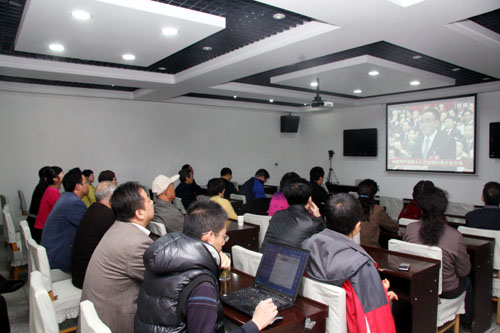 兰州分院组织院属各研究所和机关人员收看了大会开幕式直播。分院机关全体职工、离退休人员代表50余人在301会议室认真聆听学习胡锦涛总书记在开幕式上作的题为《坚定不移沿着中国特色社会主义道路前进为全面建成小康社会而奋斗》的报告。
