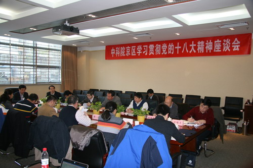 本次座谈会旨在进一步落实院党组关于把学习贯彻十八大精神作为当前和今后一个时期的首要政治任务的要求,在京区掀起学习贯彻十八大精神的热潮,把思想和行动统一到党中央的重大战略决策上来,让十八大精神成为我院“创新2020”顺利实施的思想指引。京区部分十八大代表,部分研究所所长、党委书记和青年科学家代表出席了座谈会并分别结合学习十八大报告和自身工作实际,就如何以十八大精神为指导,推进京区各项工作取得新成绩作了认真发言。大家一致认为:党的十八大是在我国进入全面建成小康社会决定性阶段召开的一次十分重要的大会,是一次高举旗帜、继往开来、团结奋进的大会。十八大所确立的以科学发展观为核心的指导思想,必将成为我们今后工作的强大思想武器,对于我们坚持和发展中国特色社会主义具有重大的现实意义和深远的历史意义。学习贯彻十八大精神,重点是落实到研究所的实际工作中去,进一步理清发展的思路,确定发展的目标,研究发展的措施,增强发展的信心,以十八大精神为指引,积极落实“民主办院、开放兴院、人才强院”的发展战略,以“一三五”规划的落实为抓手,深入推进“创新2020”的顺利实施。