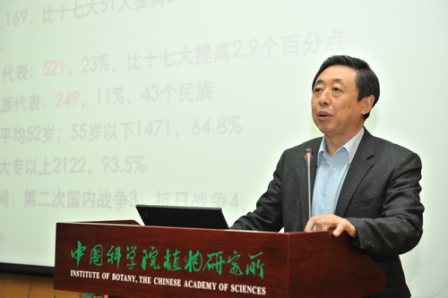 11月26日,中科院植物研究所党委组织召开十八大精神传达学习会议,邀请中科院党组成员、副秘书长、北京分院党组书记、京区党委书记、十八大代表何岩作十八大精神传达报告。会议由植物所党委书记赵锡嘉主持。