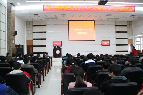 许玫英同志详细介绍了十八大大会的概况及十八大报告的主要精神,重点解读了大会提出的新思想、新观点、新论断,尤其是对科学发展观、实施创新驱动发展战略、生态文明建设等作了重点阐述。她还对党章修改情况,中央委员会、纪律检查委员会选举情况等进行了介绍。许玫英研究员的报告内容丰富,重点突出,逻辑性强,演讲生动,对帮助广大党员干部全面准确领会党的十八大精神起到很好的辅导作用。