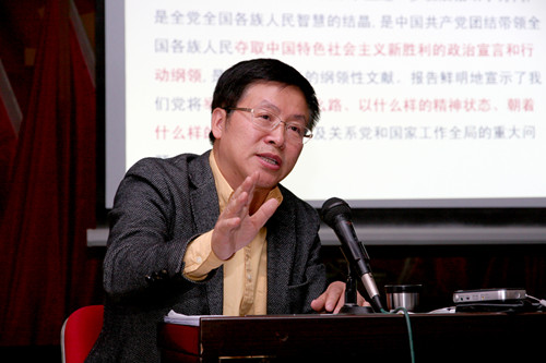 刘丛强院士用了两个多小时的时间,全面系统地传达了中共十八大会议主要精神,对胡锦涛总书记的重要报告进行了解析。刘院士的报告分三大块共12个部分,对胡锦涛总书记的报告进行了详细的诠释;对十八大报告包括:两个“五位一体”构成党和国家战略新布局;科学发展观是党的指导思想的又一次与时俱进;“八个坚持”丰富了中国特色社会主义内涵;“两个百年目标”是夺取新胜利的两座里程碑;从“五个方面”充实完善了全面建成小康社会目标要求;社会主义协商民主是政治体制改革重要内容;24个字分三个层面概括了社会主义核心价值观;“三型”是对执政党自身建设规律的更全面把握等八大亮点的新思想、新观点、新部署进行了详细的解读;对党章修改集中在六个方面:包括对科学发展观做出新的定位和阐述;充实完善中国特色社会主义重要成就的内容;充实了坚持改革开放的内容;充实了中国特色社会主义总体布局的内容;充实完善关于党的建设总体要求的内容;并对部分条文做出修改谈了自己的学习体会。刘院士的报告深入细致,纵深解读,给在所的党员干部上了一堂生动的党课。