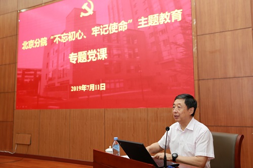 北京分院举办“不忘初心、牢记使命”主题教育专题党课教育学习活动。中科院党组成员、北京分院院长何岩作《“不忘初心、牢记使命”——全力参与北京科创中心建设》专题党课报告。