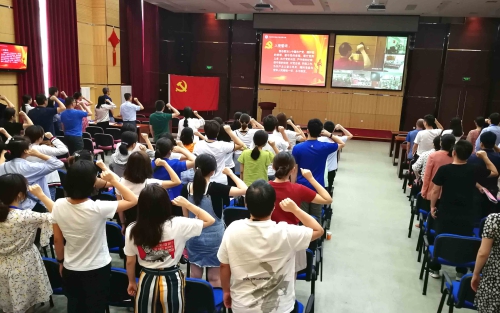全体党员重温入党誓词。在空天信息院党委工作班子成员、副院长吴海涛的带领下,全体党员面向党旗,庄严宣誓,牢记入党初心,恪守入党承诺。