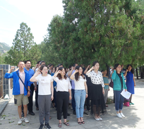 在平西抗日烈士陵园纪念碑前,举行了新党员入党宣誓和全体党员重温入党誓词仪式。在党委委员、党办主任任丽的带领下,面对党旗庄严宣誓。宣誓完毕后,向纪念碑敬献了鲜花。