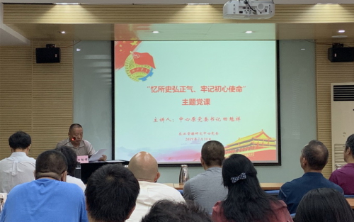遗传与发育生物学研究所农业资源研究中心党委组织召开“忆所史弘正气、牢记初心使命”老干部讲党课暨“不忘初心、牢记使命”读书班活动。农业资源中心副处级以上领导干部、青年职工、学生党员、青年团员、支部书记和老干部代表等近80人参加活动。