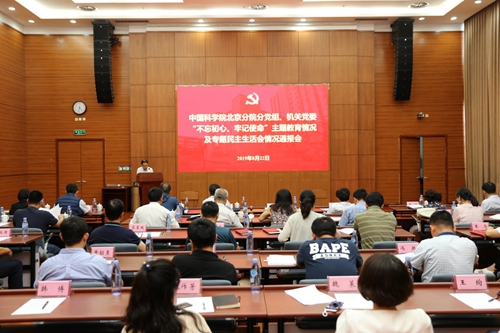 北京分院分党组书记马扬作情况通报,介绍了北京分院分党组、机关党委主题教育开展情况,重点介绍了学习教育、调查研究、检视问题、整改落实和专题民主生活会有关情况及成效。关于下一步工作,马扬提出要求:进一步坚持问题导向,持续抓好整改落实;进一步加强督导检查,严防问题回潮;进一步开展成果检验,巩固深化成效。他表示,北京分院分党组将继续推动学习贯彻习近平新时代中国特色社会主义思想往深里走、往心里走、往实里走,切实用主题教育成效指导实际工作、解决实际问题,为推进北京分院改革创新发展,为中科院基本实现“四个率先”目标贡献更大的力量。