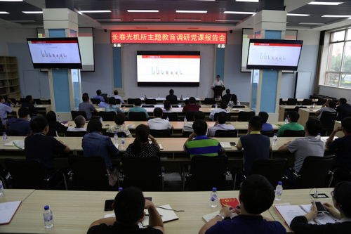 “不忘初心、牢记使命”主题教育的整体安排,中科院长春光学精密机械与物理研究所党委召开主题教育调查研究专题党课。中科院“不忘初心、牢记使命”主题教育第九指导组组长郭建军和组员于学锋到会指导。长春光机所中层以上领导干部、支部书记等参加会议。