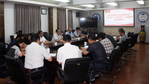 “不忘初心、牢记使命”主题教育动员部署会精神,全面推进中科院南京分院系统各单位主题教育工作,6月17日下午,南京分院召开系统单位主题教育工作推进交流会。南京分院分党组成员,中科院“不忘初心、牢记使命”主题教育第十三指导组成员,南京分院系统各单位党委书记、党办主任等27人参会。会议由南京分院分党组书记朱怀诚主持。