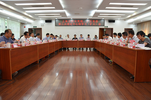 上海分院分党组、沪区党委举行第三次理论中心组学习(扩大)会。中科院“不忘初心、牢记使命”主题教育第二指导组成员,上海分院相关负责人,以及沪区党委委员、各研究院所党委负责人及党办主任、上海分院机关各部门负责人等参加会议。