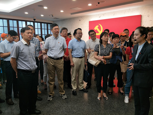 在中共一大会址,党员干部们重温了入党誓词,瞻仰了中共一大代表群像浮雕,参观了“前赴后继、救亡图存”“风云际会、相约建党”“群英汇聚、开天辟地”等专题展区,仔细观看了陈列的大量实物和图片。大家深刻感悟了中国共产党的光辉历史,深切感受到习近平总书记指出的“我们党的全部历史都是从中共一大开启的,我们走得再远都不能忘记来时的路”的深刻内涵。