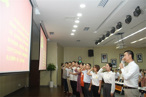 会上,优秀共产党员代表带领新党员面向党旗郑重宣誓,全体与会党员重温誓词。会议表彰了2018至2019年度优秀共产党员、优秀党务工作者、先进党支部、支部特色活动典型案例和创新文化建设贡献奖。