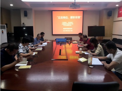 会上,大家集体原文学习了《习近平关于“不忘初心、牢记使命”重要论述选编》中“广大干部特别是年轻干部要做到信念坚、政治强、本领高、作风硬”一文;学习了《习近平新时代中国特色社会主义思想学习纲要》第十九章“掌握马克思主义思想方法和工作方法”的8个要点内容。结合所学内容与会人员交流了学习感悟,从各自实际工作出发,谈了如何落实好总书记对广大干部的要求,通过学习来武装头脑,提高自己各项能力,提升管理,服务好科研,真正做到“立足岗位、履职尽责”,推动研究所改革发展。