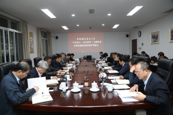 10月25日下午,中国科学技术大学召开“不忘初心、牢记使命”主题教育对照党章党规找差距专题会议。中央第四指导组成员到会指导,在校校领导班子成员参加会议。会议由校党委书记舒歌群主持。