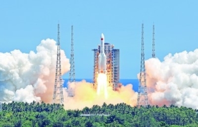 7月24日,搭载问天实验舱的长征五号B遥三运载火箭,在我国文昌航天发射场点火发射。新华社发
