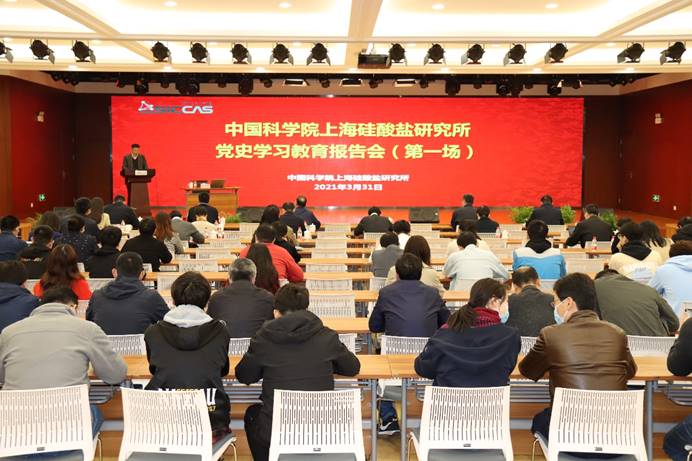 上海硅酸盐研究所组织召开党史学习教育第一场报告会。上海硅酸盐所领导班子成员、两委委员、在职和研究生党员参加学习。