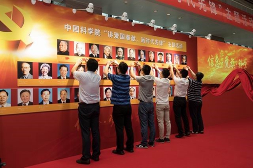 主题活动上,100余名来自科研一线的青年科技骨干通过视频重温了钱三强、陈能宽、黄昆等老一辈党员院士以身许国、终身为党的感人事迹。老一辈科学家追求真理、勇攀高峰的科学精神,勇于创新、严谨求实的学术风气,矢志报国、淡泊明志的人格力量,激励、启发着在场的每一个人。青年科研骨干代表举行了为院士墙上的党员院士佩贴党旗的庄重仪式。成为预备党员的青年科研骨干分享了将自己的科研工作融入中华民族复兴伟业的幸福感和成就感。来自中科院化学研究所、生物物理研究所、微电子研究所、植物研究所、国家空间科学中心等不同科研领域的青年党员科研骨干重温入党志愿书,回顾入党初心,再现入党时的庄严时刻。赵忠贤为现场400余名来自一线的青年科技人员上了一堂生动的党课,讲述了老一辈党员科学家对党忠诚、以国家需要为先的事迹和精神,讲述了自己兑现入党誓言、围绕国家需求开展科技创新的感人事迹。