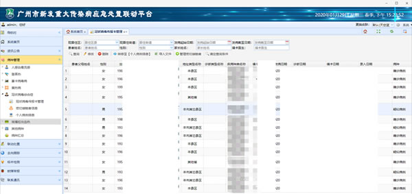 中科软团队在24小时内完成广东、郑州等省市疾控中心相关信息系统更新,实现医疗机构通过疾控平台实时上报传染病病例信息,大大提高医疗机构病例报告效率;协助贵州、福建、安徽、成都等疾控机构第一时间完成新病毒编码更新;接到广州、深圳等市级疾控中心需求后,在3日内紧急研发上线新疑似病例样本在线送检模块、面向医院车站机场的发热病人筛查模块,实现态势分析的可视化展示。