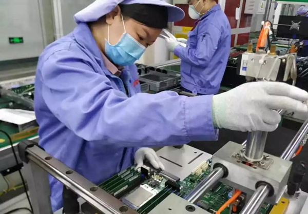 曙光制造物流中心总经理王东振介绍,为保证最快速度生产,工厂实行零间断轮岗工作制,生产线24小时不停歇,同时,公司安排复工员工每4小时换一次口罩,早、中、晚三次进行全身消毒,测量体温。